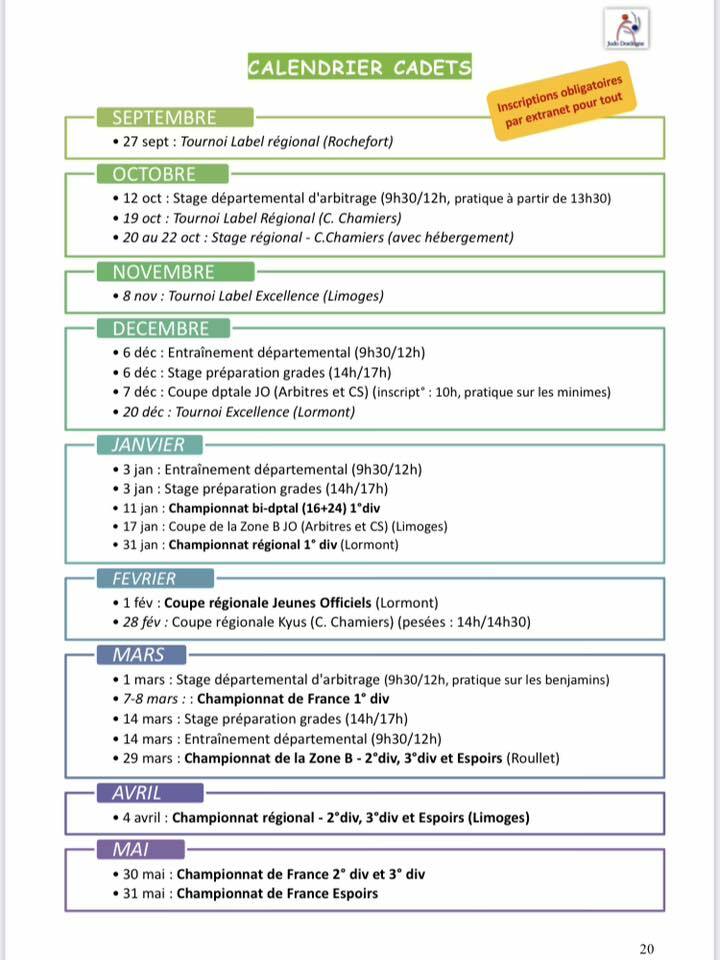 Calendrier Cadet(te)s 2025-2026